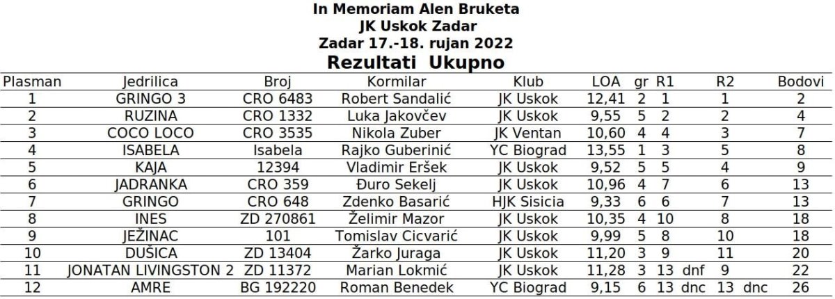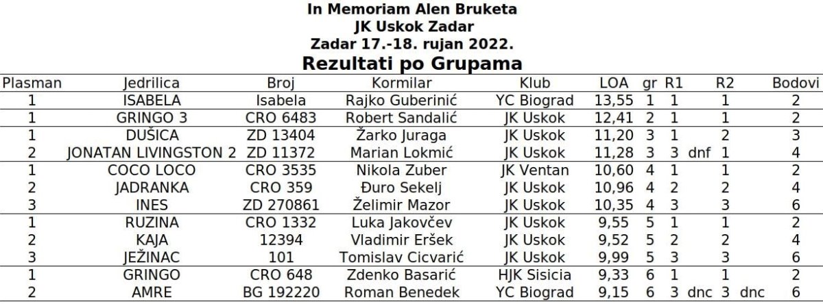 Na tradicionalnoj regati koju jedriličari JK Uskok već godinama organiziraju u znak sjećanja na svog tragično preminulog prijatelja i trenera, ove godine okupila je 12 jedrilica čije posade su manjim dijelom bile iz Zadra, a u ogromnoj većini iz kontinentalnog dijela Lijepe naše.