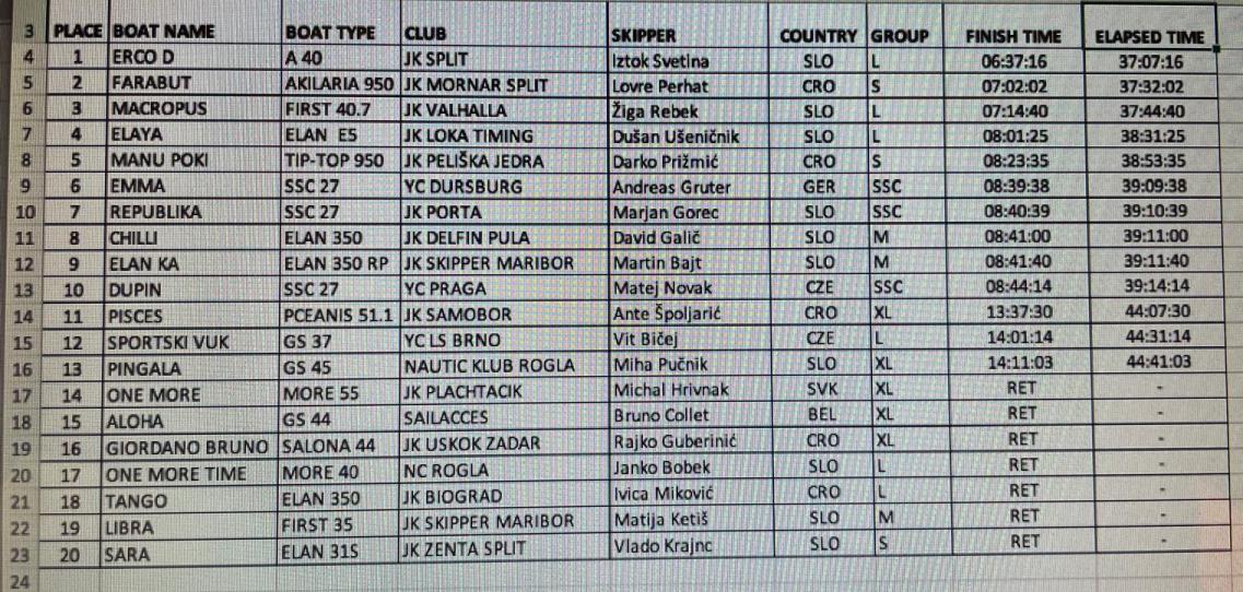 Kompletne rezultate regate možete pronaći na ovom linku.