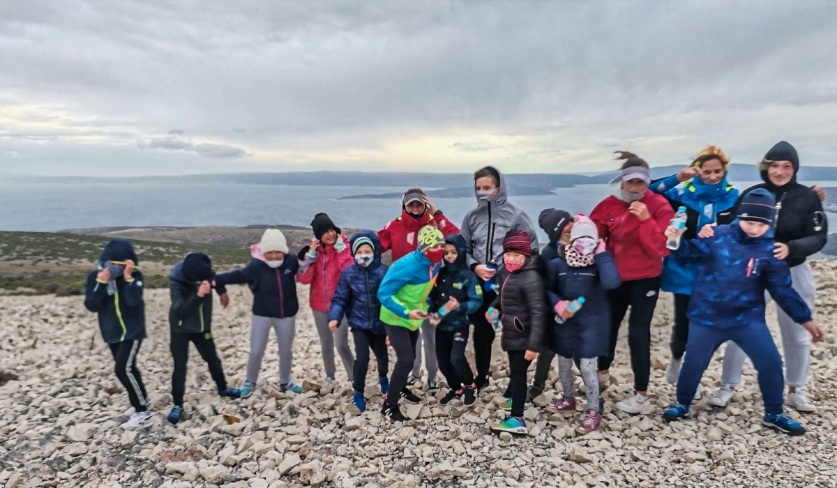 Odlučili smo odvesti djecu na Veli vrh, brdo iznad Punta (541 metar nadmorske visine), da odozgor vide cijeli taj akvatorij, jer se vidi i Rijeka i Učka i sve okolo. Do gore smo išli pješke, a i to je bilo zanimljivo jer je gore puhalo do 70 čvorova, pa je bilo skroz veselo. Do tada su samo na moru iskusili do 30, a sad su vidjeli kako to izgleda kad burica još malo jače puše :)