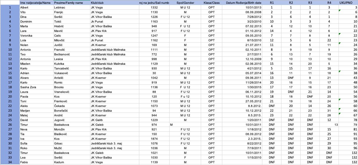 Flota Optimista brojala je 34 imena, a kompletne im rezultate možete pronaći na ovom linku.
