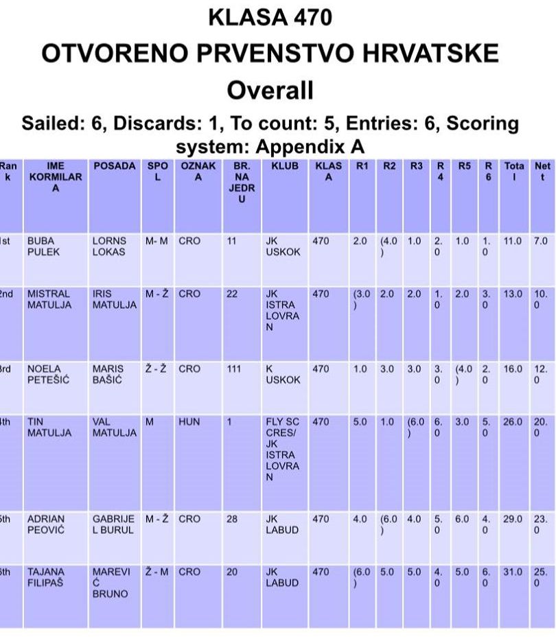 Kompletne rezultate klase 470 možete pronaći ovdje.