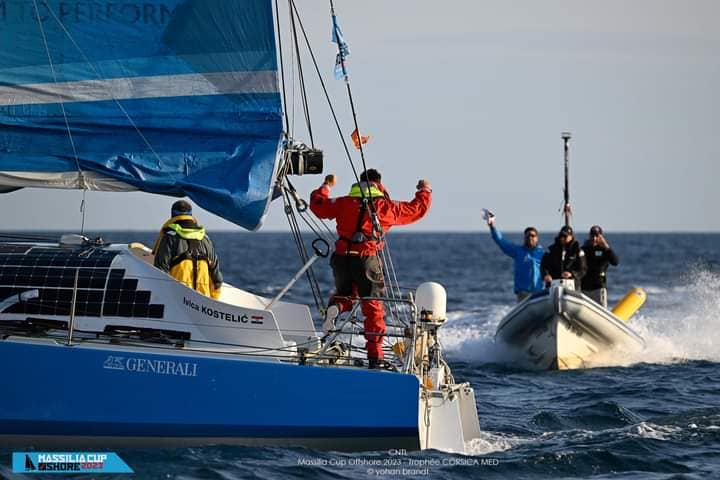 Srećom, svojom razboritošću ili zbog oštećenja brodova i opreme, sve posade su odustale od regate i povukle se u luke oko Toulona. Od 27 brodova na startu, do cilja su stigla samo tri broda: Made in Midi (Pavant/ Camprubi Laurent Camprubi ), Socomec (Guerra/ Giordano) i ACI 40 (Kostelić, Čargo). U probranom društvu profesionalaca, našao se i jadranski šegrt. Ne mogu reći da nisam ponosan...