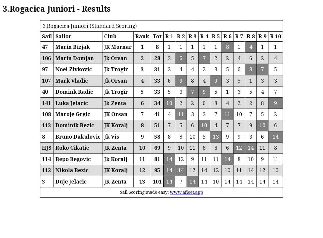 Kompletne rezultate juniorske flote možete pronaći na ovom linku.