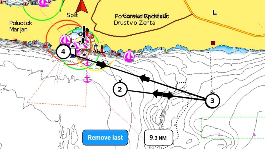 S obzirom na najavljeni lagani vjetar dogovoren je i pomoćni cilj koji je definiran kao zamišljena linija koja povezuje ulaz u lučicu Zenta s njenim komunalnim ispustom. Naravno, nije bilo svejedno gdje se ta linija presjeće, već se trebalo doći na bar tri duljine jedrilice od ispusta.